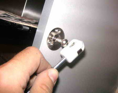 В заключении небольшое замечание. Если вдруг понадобится снять дверцу и установленные амортизаторы, то для этого достаточно шилом аккуратно оттянуть стопорное пружинное кольцо.